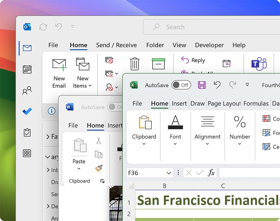 Experience a Windows OS environment on your Mac. Use a virtual machine to run the full-featured versions of the most commonly used Office 365 applications, including Microsoft Excel, PowerPoint, and Outlook.
